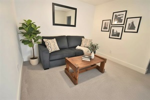 Step inside and experience a warm, thoughtfully designed interior with plenty of natural light, open living spaces, and attention to detail throughout. The main level features a spacious living room with a cozy gas/wood burning fireplace, plush seating, and a large wall-mounted smart TV — ideal for relaxing evenings, streaming, and quality time with loved ones. The adjacent dining area flows into a fully equipped kitchen with modern appliances, plenty of counter space, and all cookware and utensils needed for daily meals or entertaining guests.