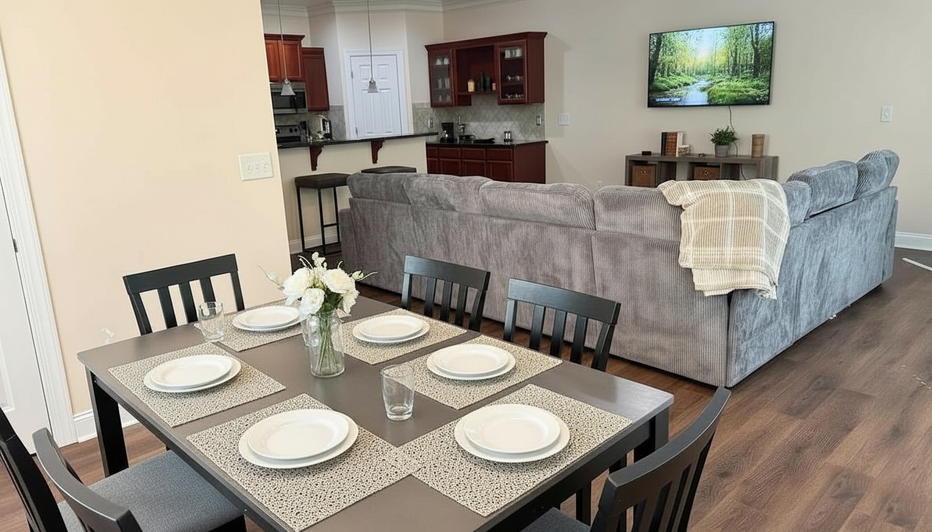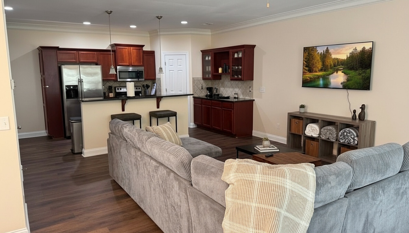 3 Bedrooms • 3 Bathrooms (2 full, 1 half) 3 Baths (2 full, 1 half) • Sleeps 1-8Welcome to 1514 Ben Park Way — a beautifully maintained, fully furnished 3-bedroom, 2.5-bathroom end-unit townhome in the highly desirable Grayson, Georgia area. Perfectly suited for short term or longer stays, relocations, family living, or flexible month-to-month housing, this residence blends comfort, convenience, and Southern charm in a quiet neighborhood just minutes from top-rated Gwinnett County schools and a short drive to greater Atlanta.