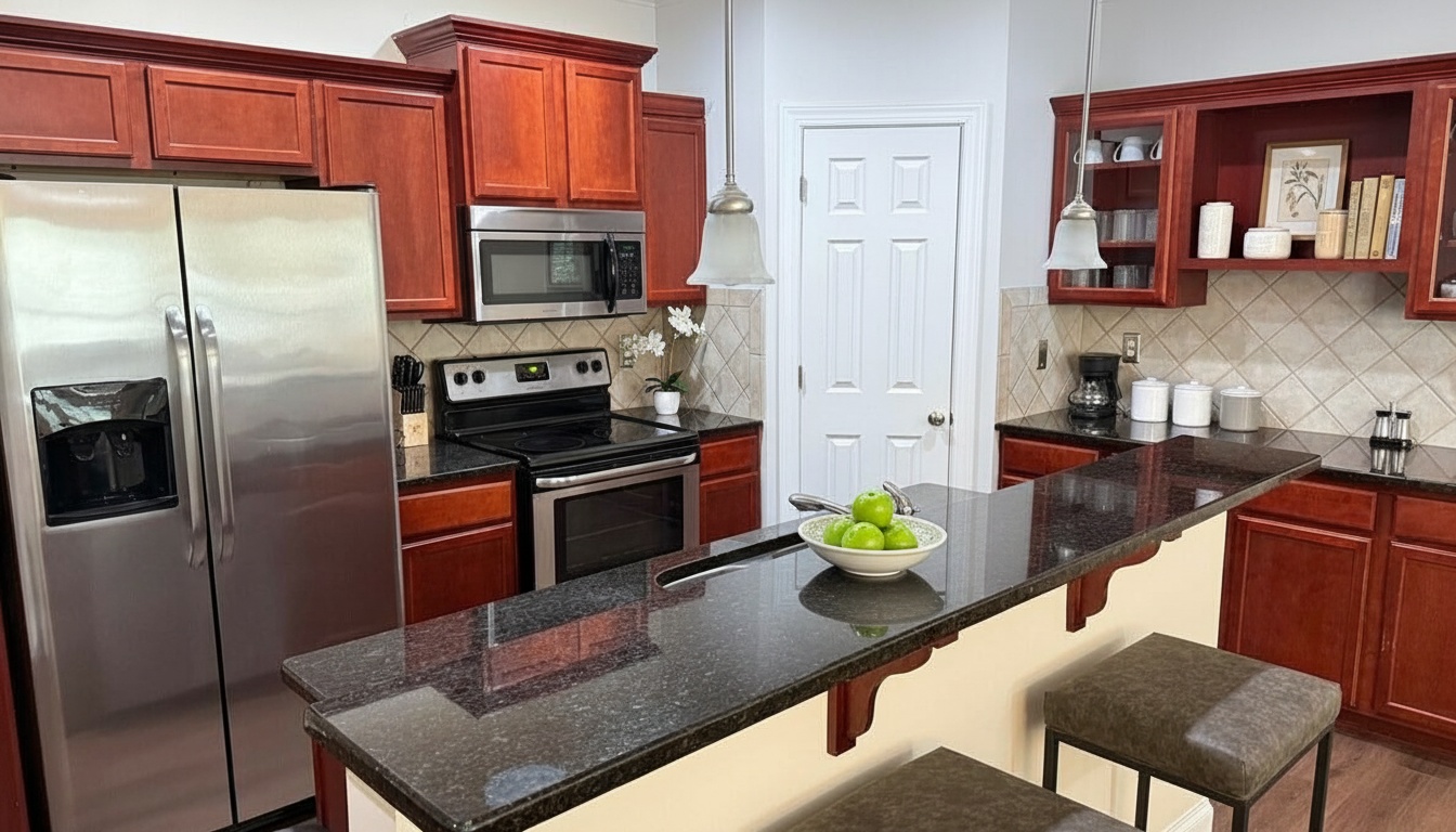 Step inside and experience a warm, thoughtfully designed interior with rich hardwood floors, plenty of natural light, and a stunning masonry fireplace as the centerpiece of the open living space. The main level features a spacious living room ideal for relaxing evenings and quality time with loved ones, flowing into a fully equipped kitchen with granite countertops, brand new stainless steel appliances, and ample counter space for daily meals or entertaining guests.